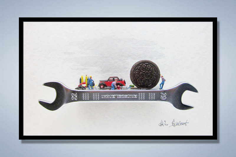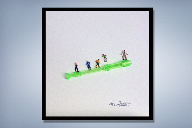 Spur H0 in Verbindung mit unterschiedlichen Alltagsgegenständen lassen witzige und bisweilen absurde Szenen